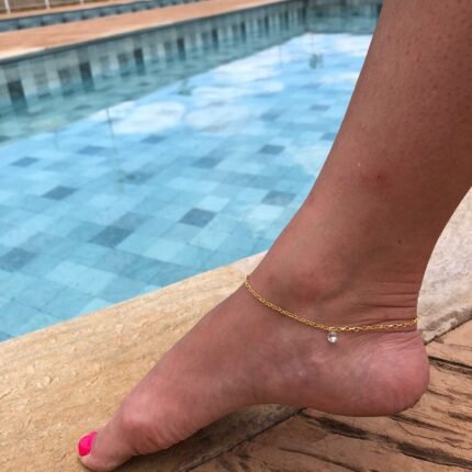 Tornozeleira com Pingente de Ponto de Luz Folheado em Ouro 18k