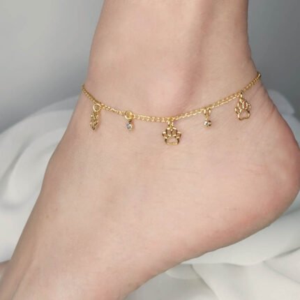 Tornozeleira Patinhas de Cachorro Folheado a Ouro 18K