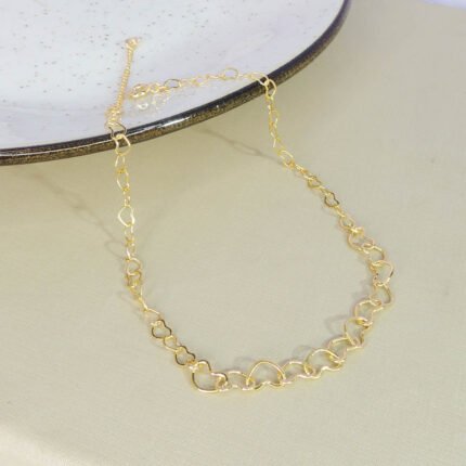 Tornozeleira com Corrente de Corações Pequenos Folheado em Ouro 18k