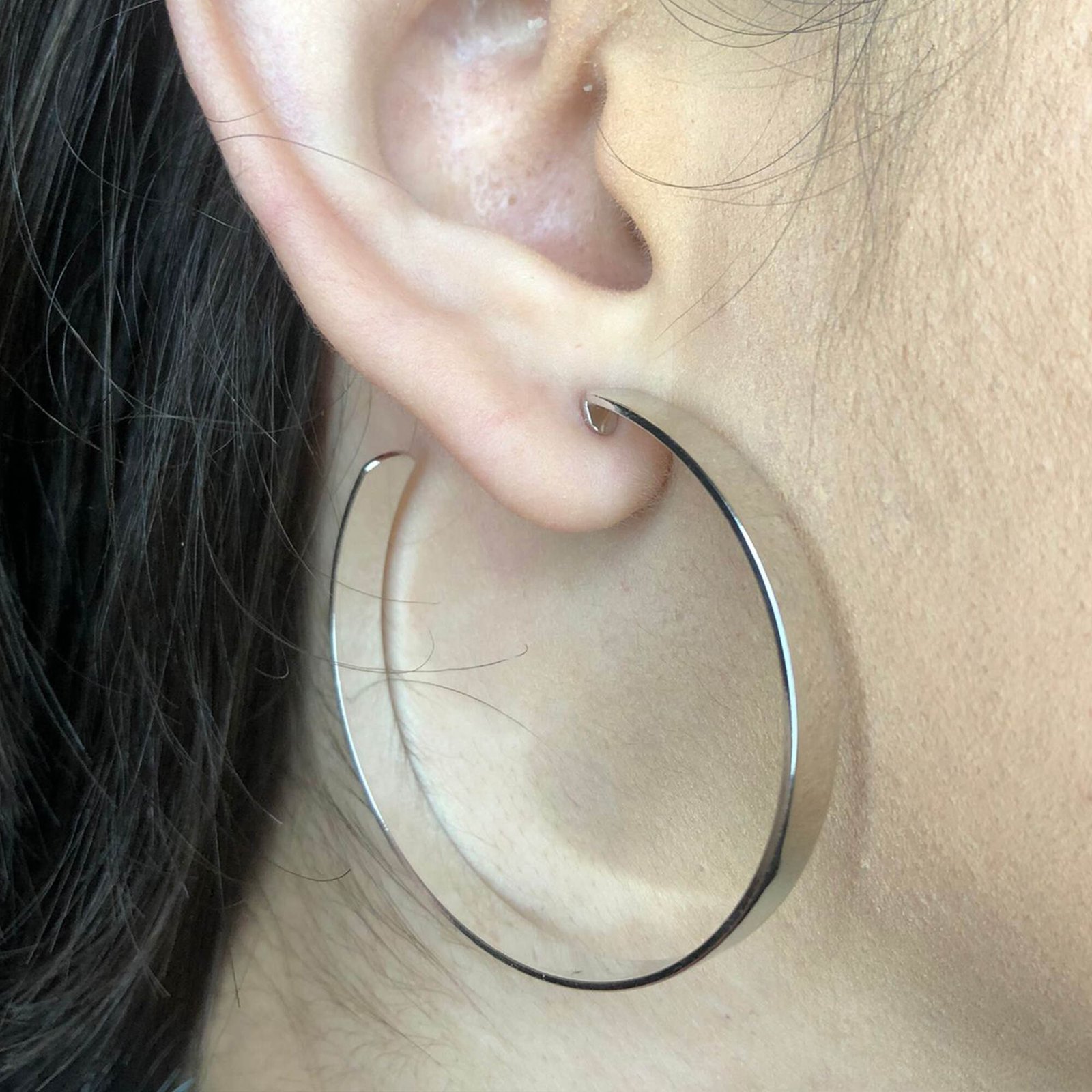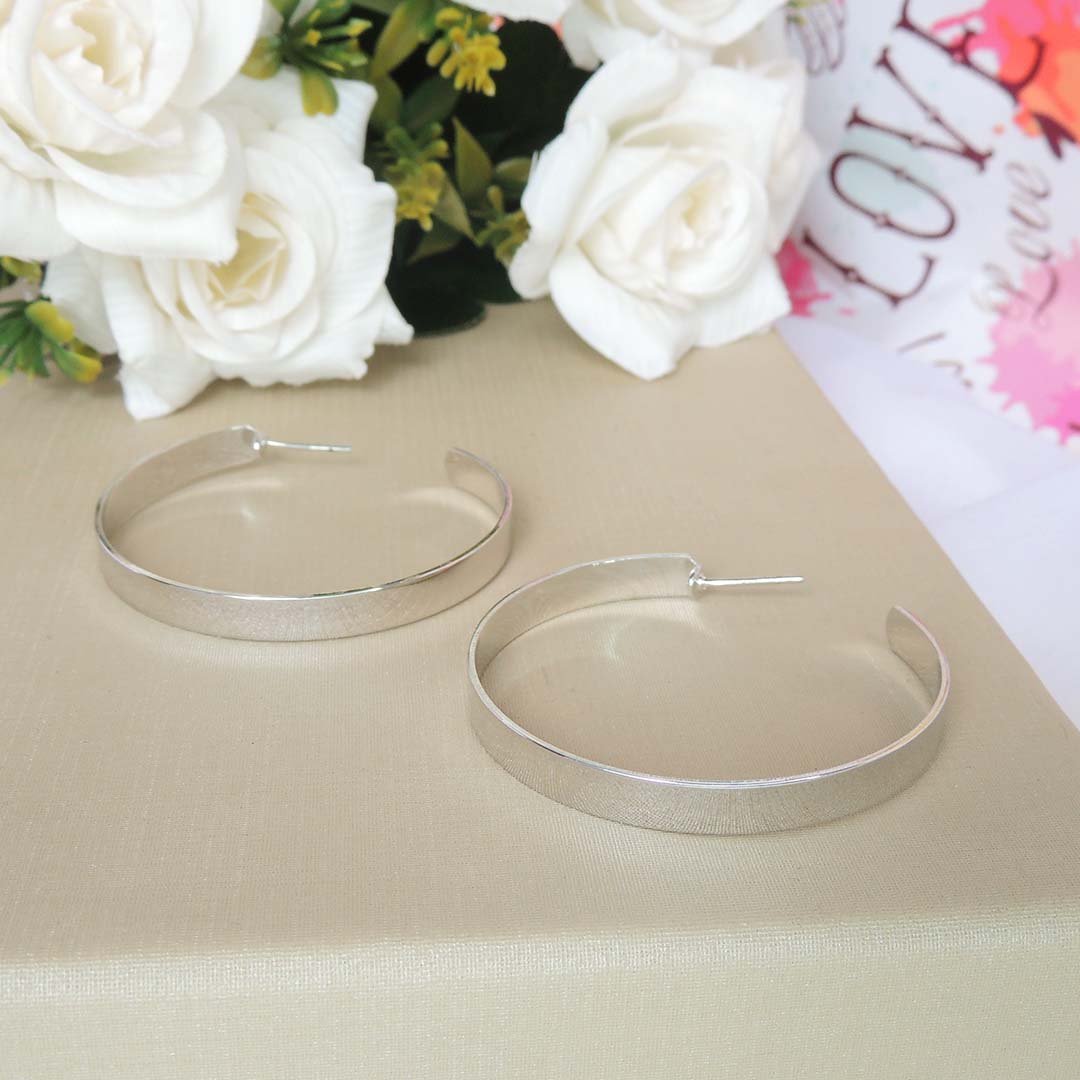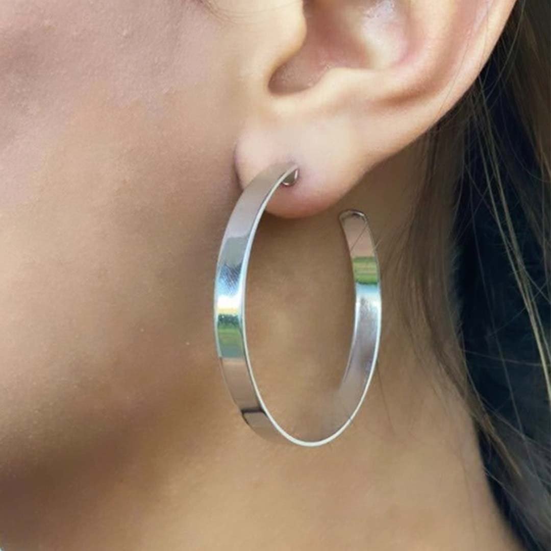 Brinco Argola Grande Grossa Clássica Folheado em Ródio Branco