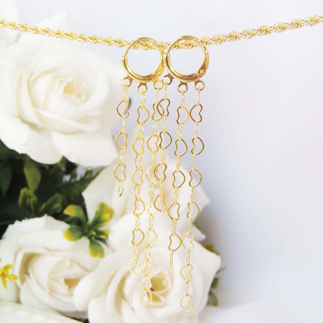 Brinco Médio Com Fio e Coração com Vários Vazados Folheado R$29,90