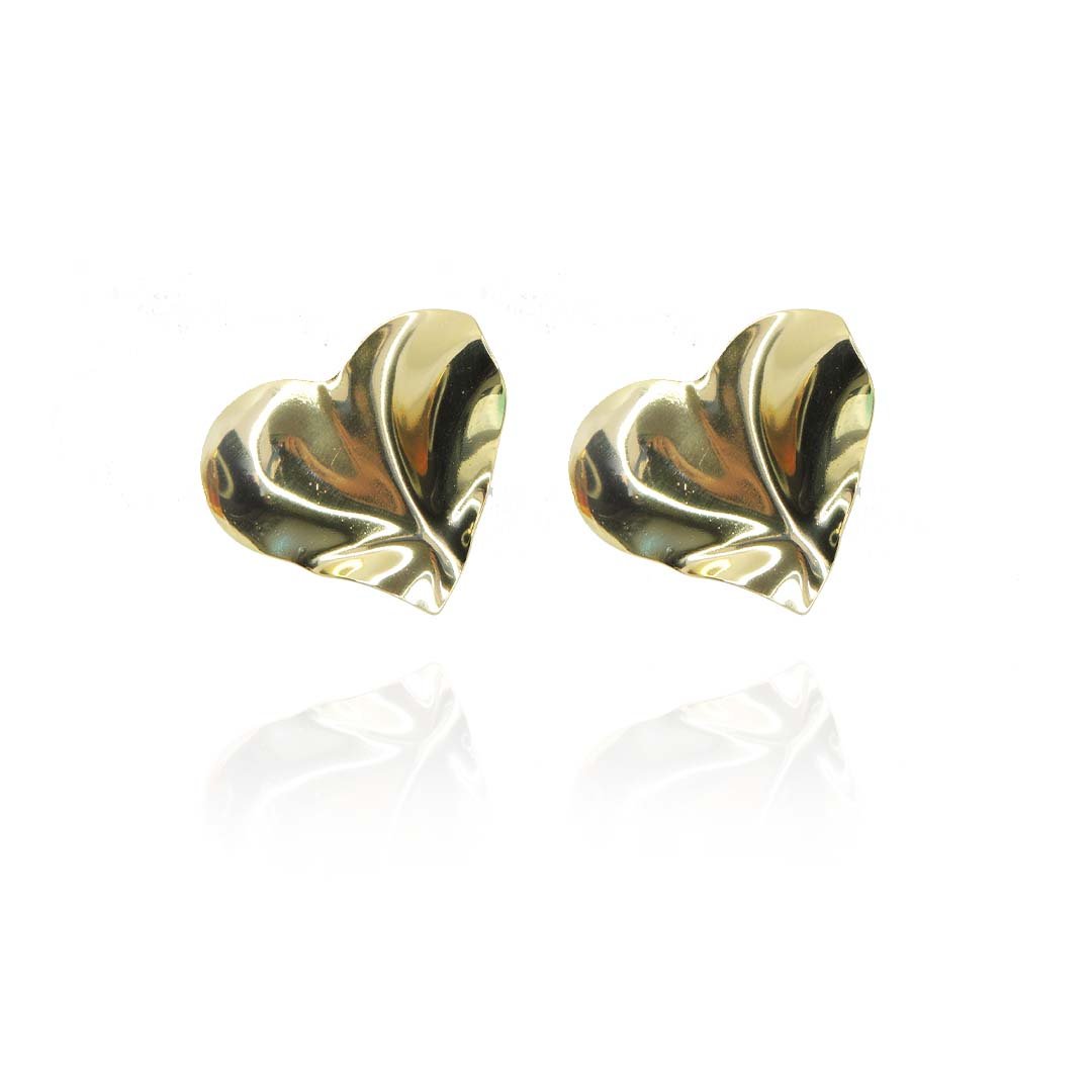 Brinco Efeito Ondulado de Coração Folheado em Ouro 18k