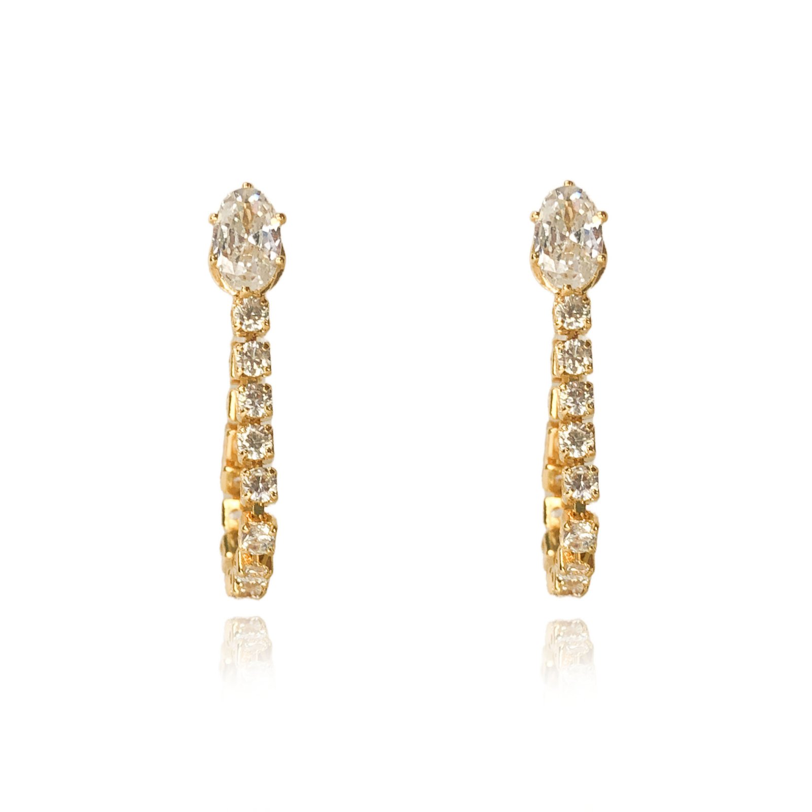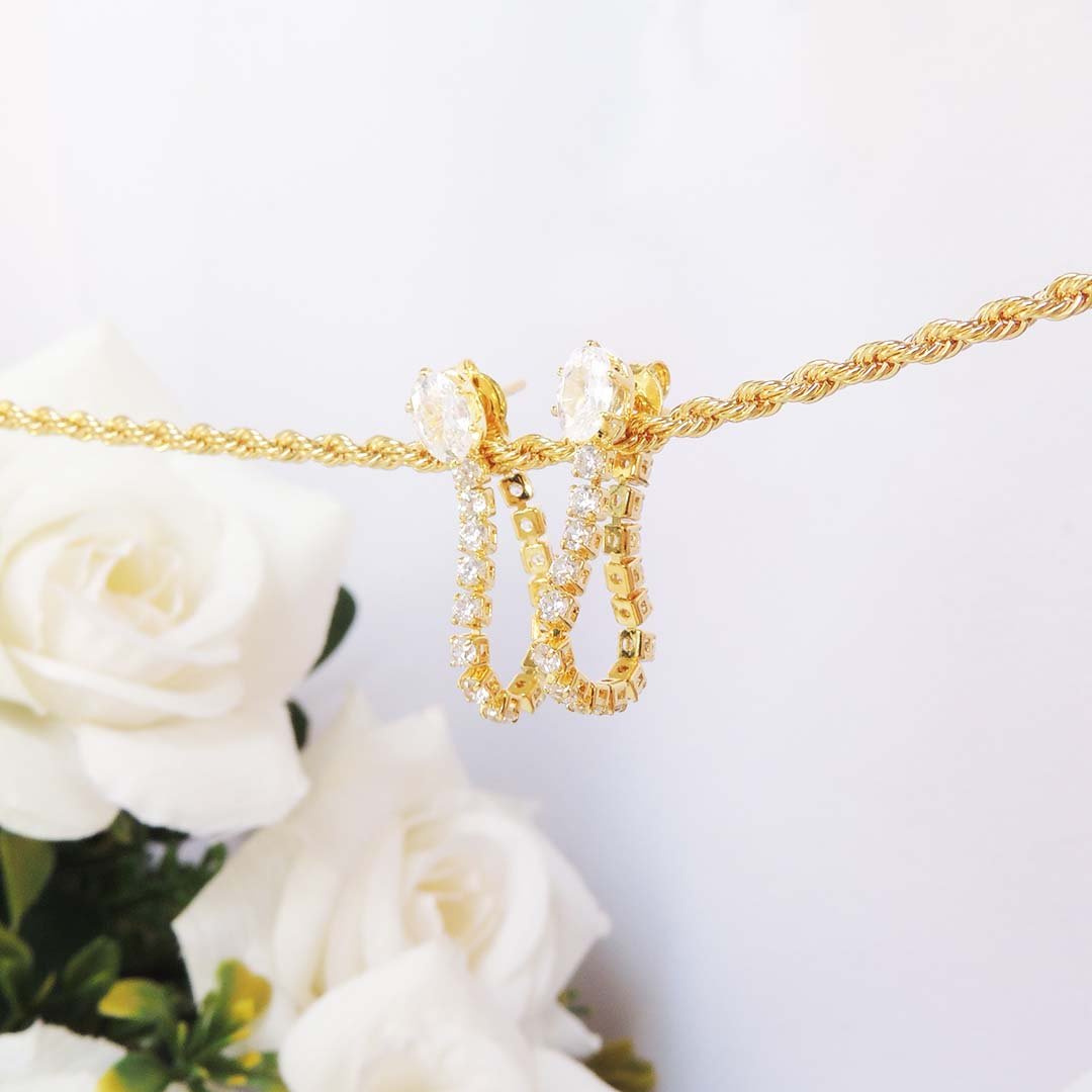 Esse brinco é composto por uma corrente de zircônias brancas com uma zircônia maior oval, dando ainda mais charme a essa peça que é única.