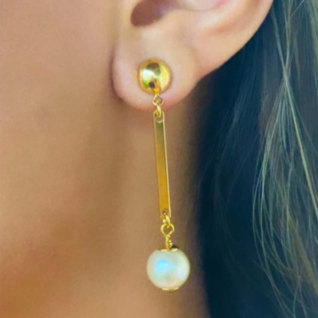 Uma combinação perfeita para esse brinco é com a pulseira de pérolas, que deixará o seu look delicado.