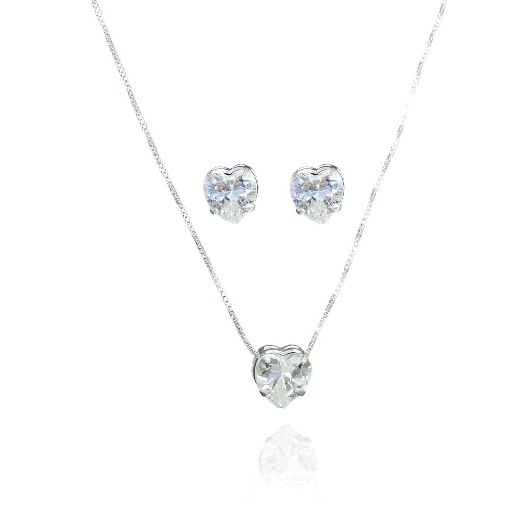 Conjunto Coração com Zircônia em Prata 925