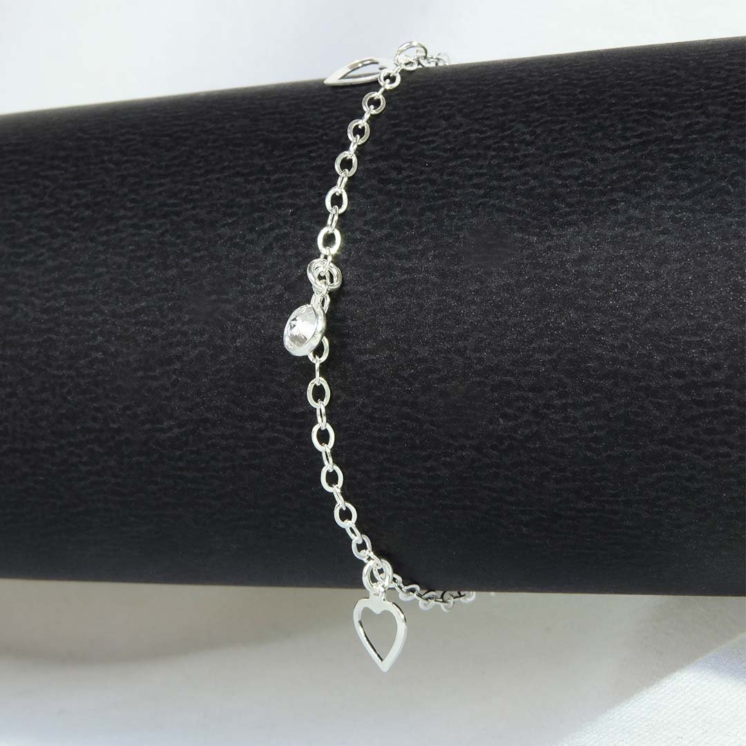 Pulseira com Coração e Zircônia em Prata 925